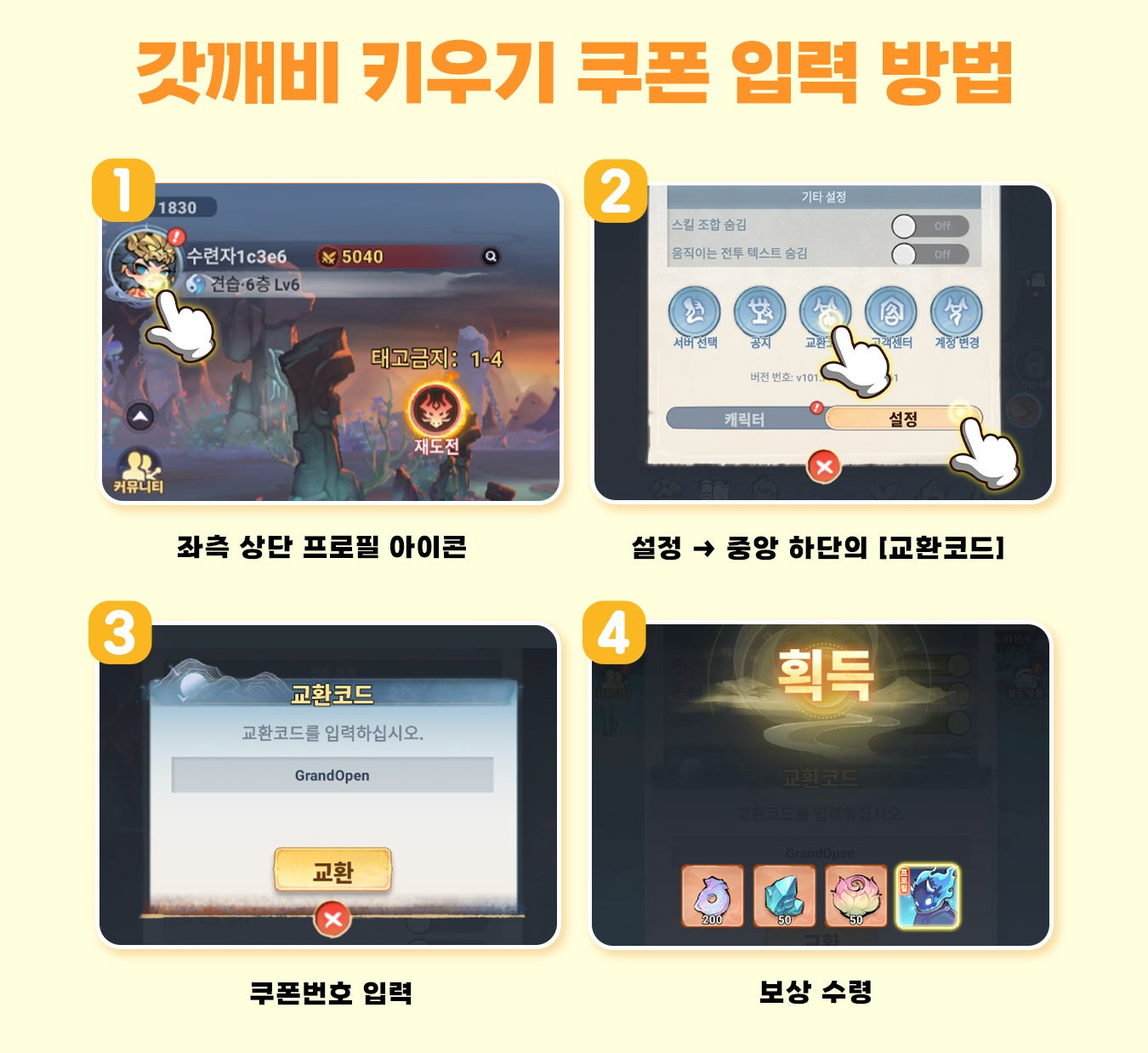 갓깨비 키우기 쿠폰 코드 입력 방법