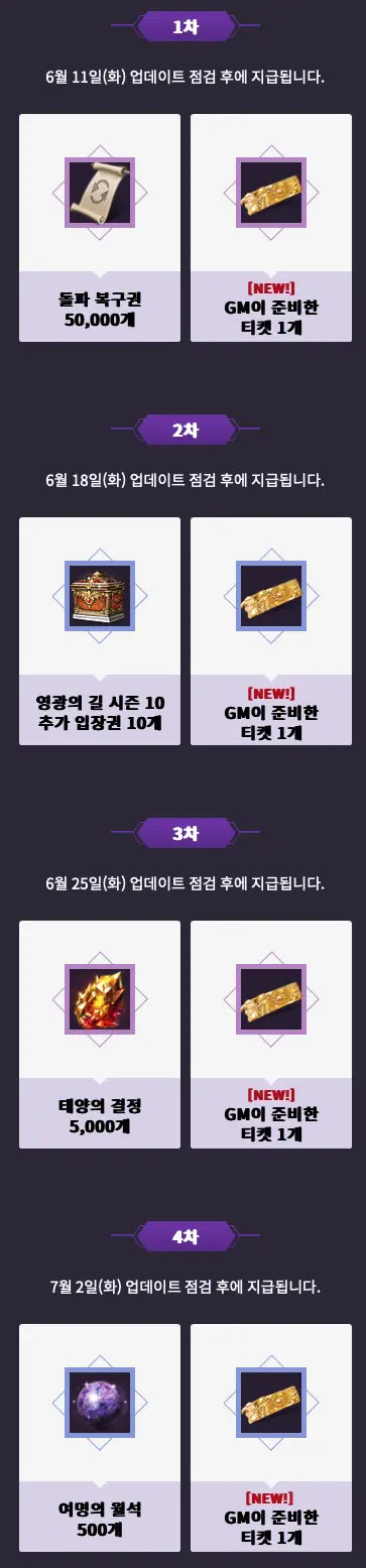 | 모험가님을위해June비한쿠폰 | 매주 화요일마다 틀립니다. |