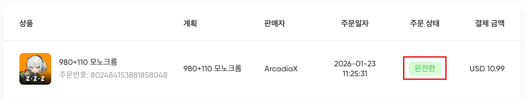 주문 확인해보면 [완전한]이 떠있는데