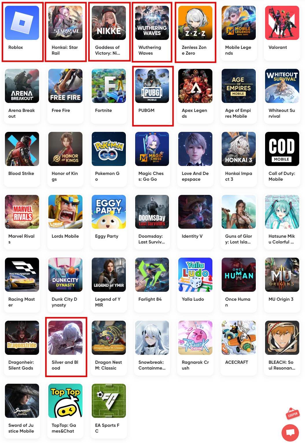 겜스고 GamsGo 충전 게임 목록
