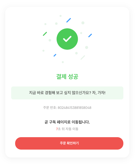 6. 구매 완료가 뜨고