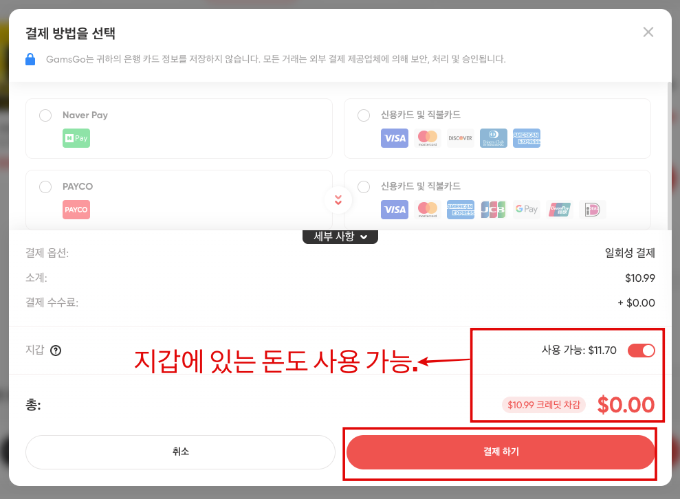 4. 결제 방법을 선택하라고 하는데요.