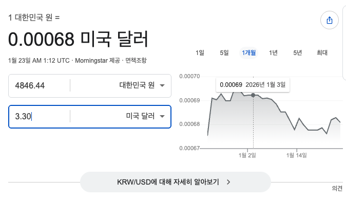 (2026년 1월 23일 환율 기준.)