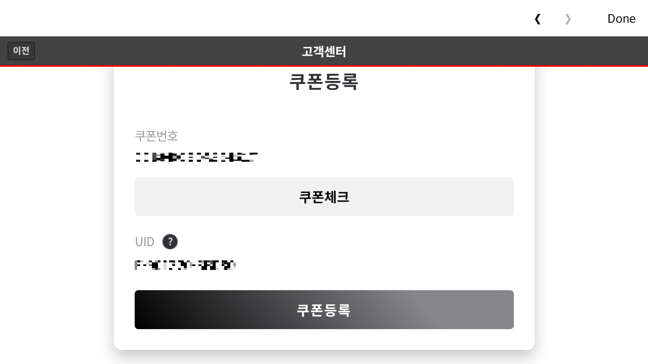 2. 고객 센터에서 쿠폰 등록을 클릭합니다.