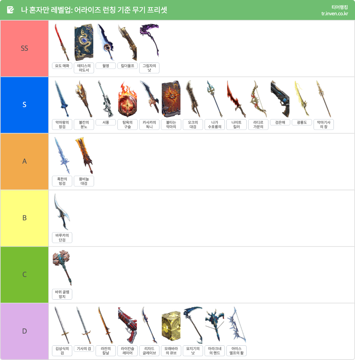나 혼자만 레벨업 어라이즈 무기 티어