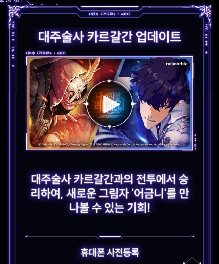 웹툰 원작 나 혼자만 레벨업 어라이즈.