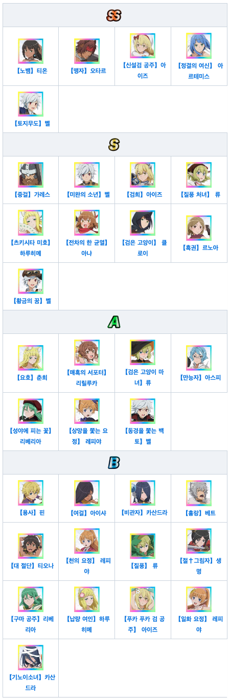 던만추 배틀 크로니클 모험자 티어 등급표 [4월 25일 벨 추가]