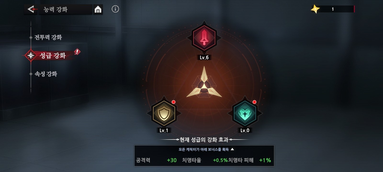 성급 강화는 캐릭터 승급을 한 번 할 때마다