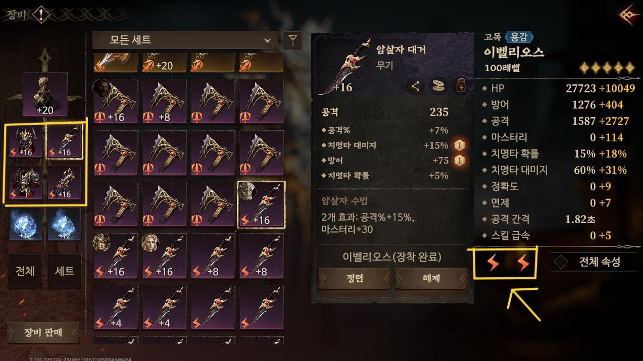 드래곤에어 : 침묵의 신 - 전설 세트 장비 효과 기초 가이드 추천 공략 (2023년 10월)