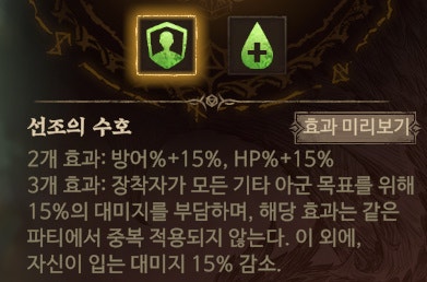 전설 세트 장비 효과와