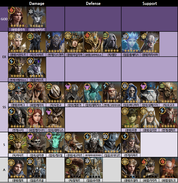 드래곤에어 침묵의 신 레전드 영웅 추천 티어