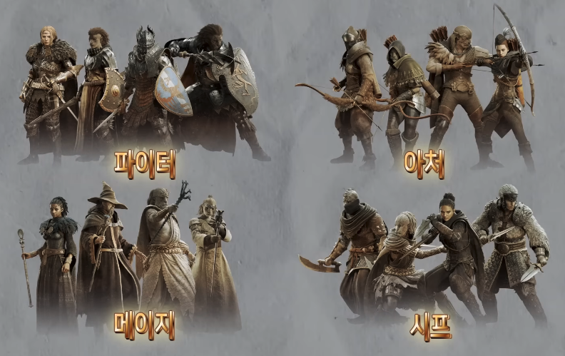 | 파이터 | 탱커 | 한손검, 방패 | 근거리 | 생존 가능성 | 약한 데미지 |