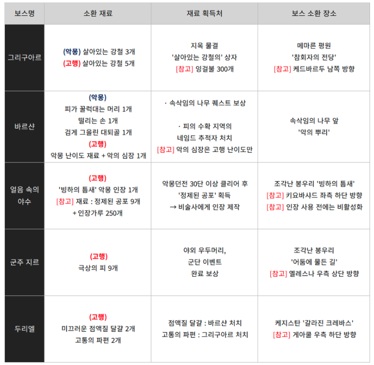 신규 보스의 소환 재료와
