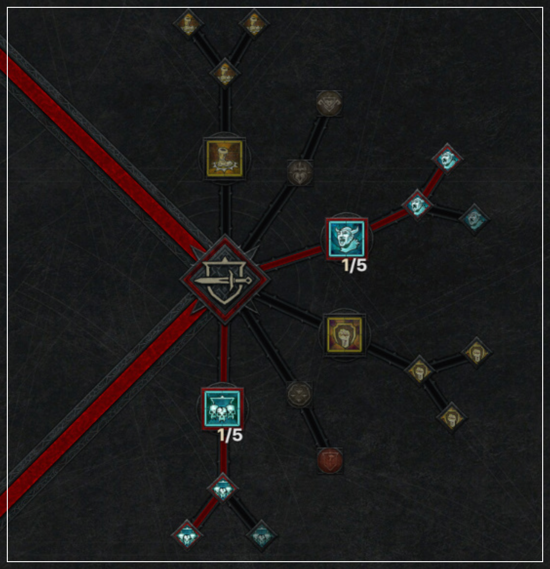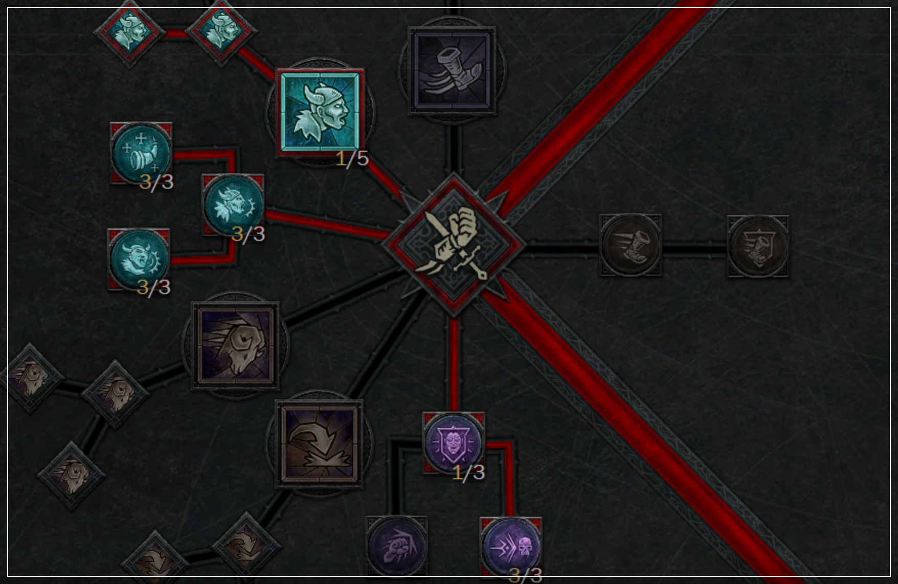난투에서는 [전장의 함성], [강화된 전장의 함성], [힘의 전장의 함성]을 각각 찍습니다. 함성은 생존+화력 증가+자원 수급이 되는 야만용사의 핵심 스킬입니다. [집결의 함성]과 [전장의 함성]을 먼저 찍는 것을 추천드립니다.