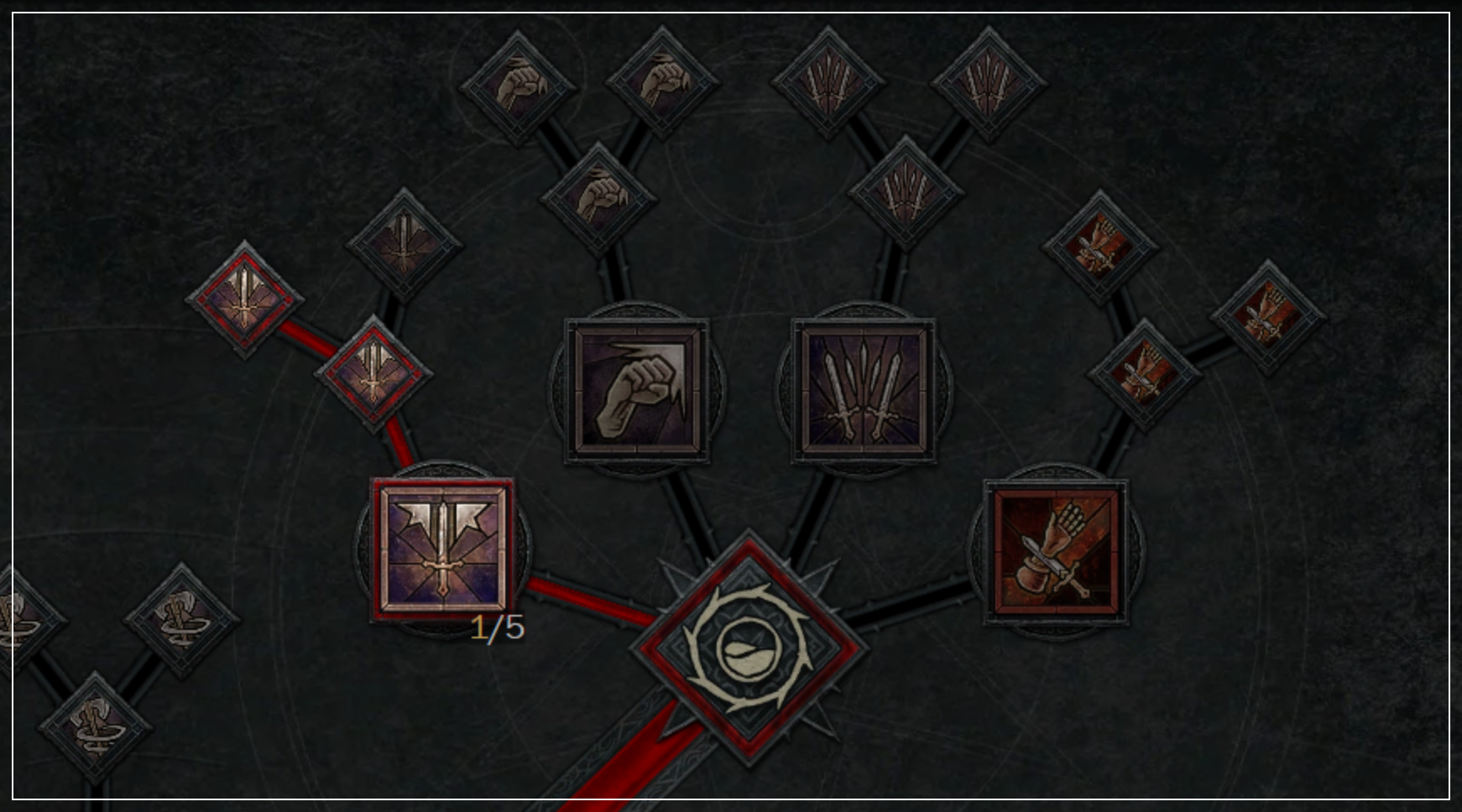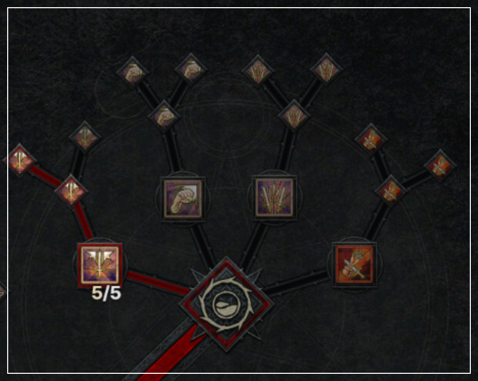 여기서 추가적인 [강화된 달려들기], [전투 달려들기]를 찍음으로써 피해증가+출혈을 추가적으로 발생시킵니다.