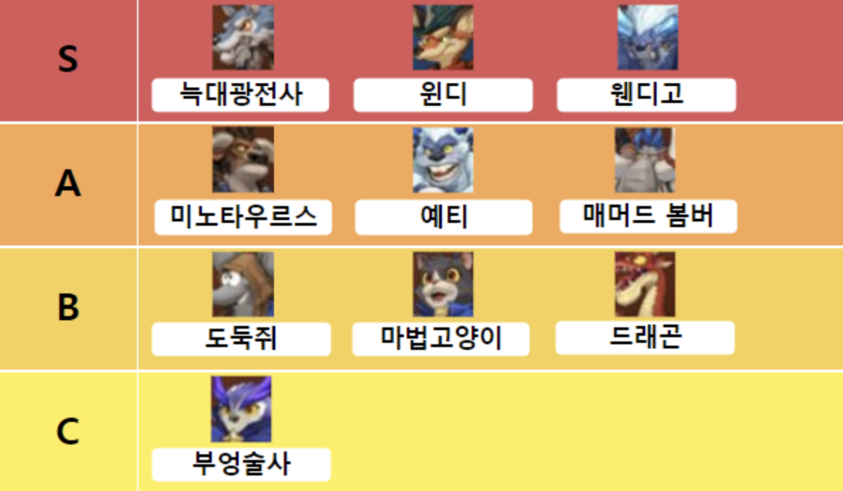 디펜스 더비 [Defense Derby] 야수덱 유닛 티어
