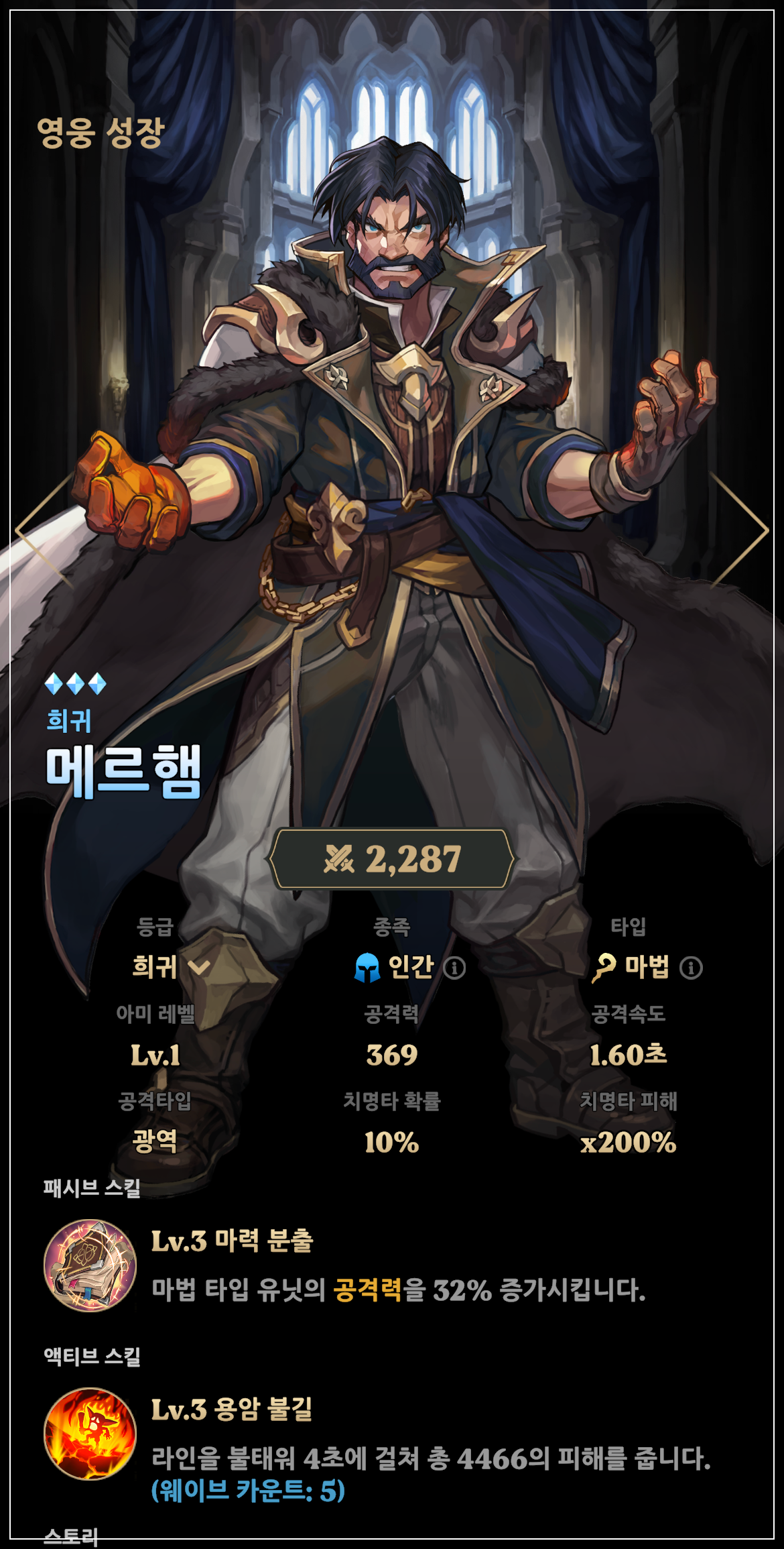 그 마법사 유닛의 대미지를 극대화시키는 영웅이 바로 메르헴입니다.