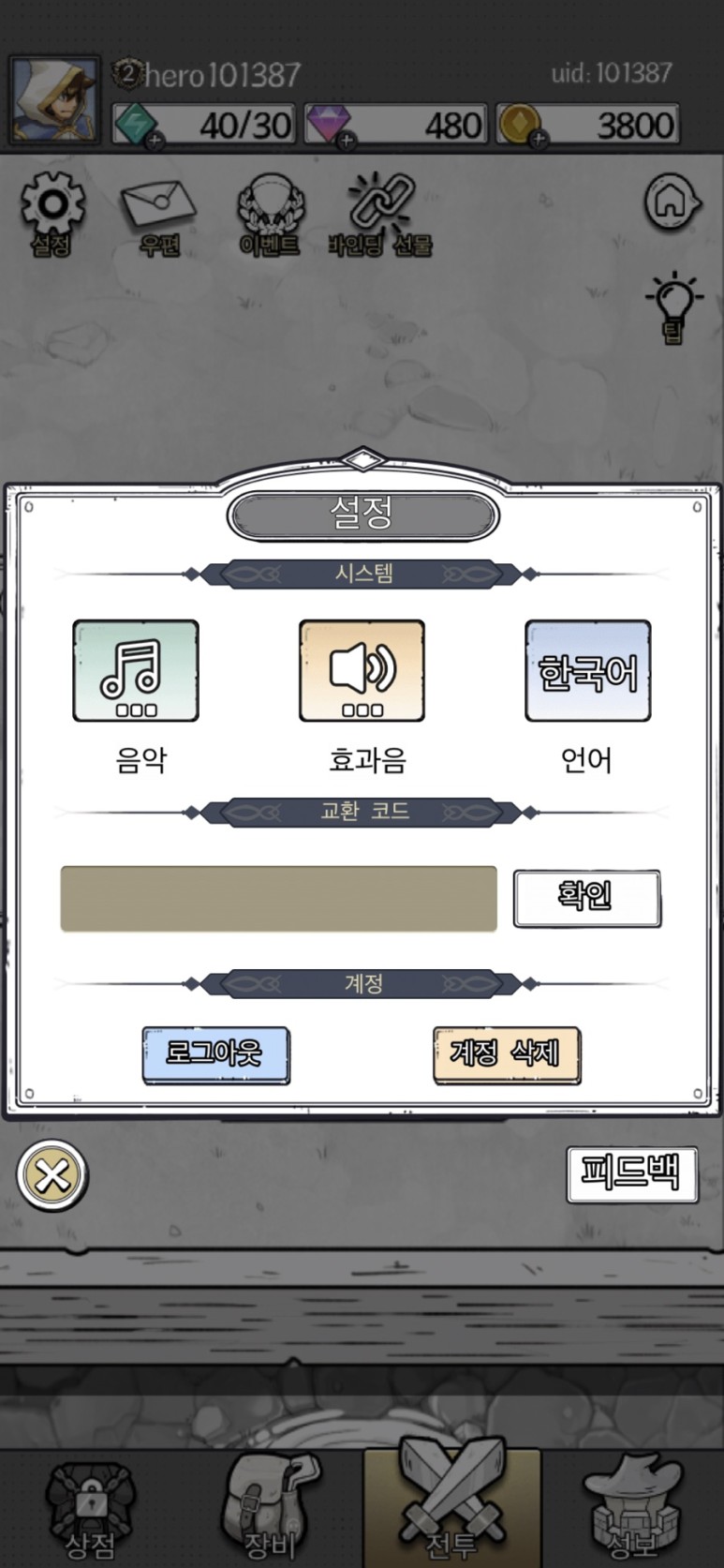 땡땡 마법사 쿠폰 코드 입력 방법