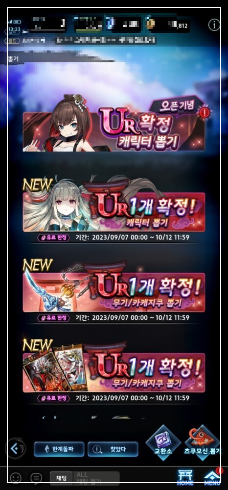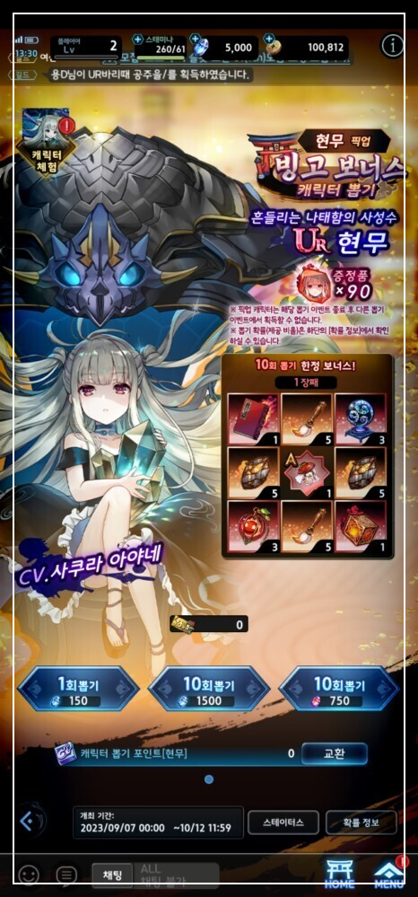 3. 보상으로 받은 UR 확정 뽑기권으로 캐릭터를 뽑습니다.