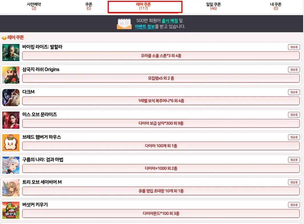 2. 레어 쿠폰 탭으로 들어갑니다.