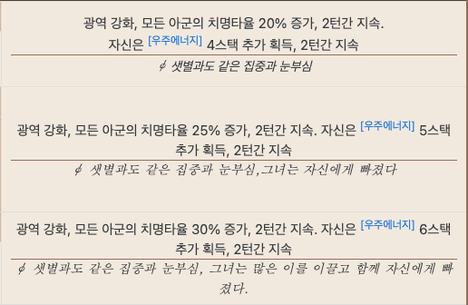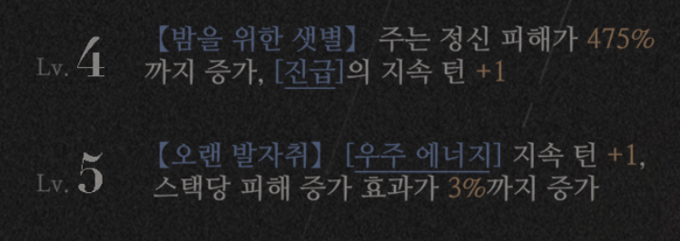 2 레벨 스킬들로 [우주 에너지] 수급하면 됩니다.