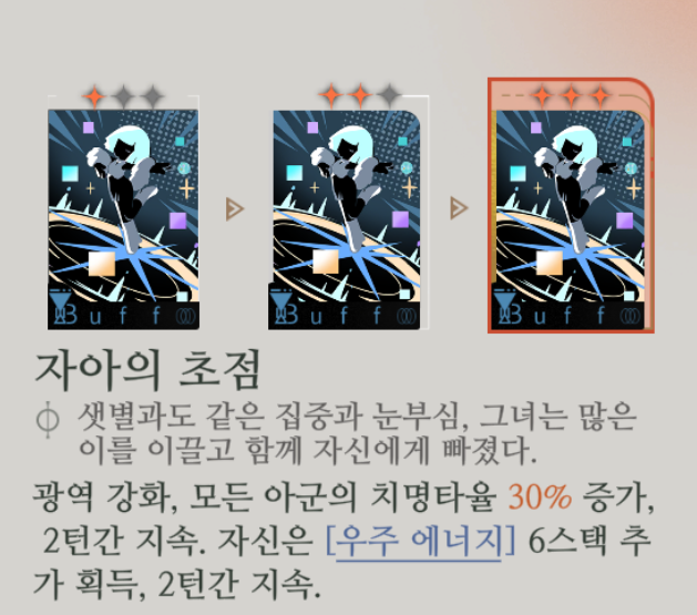 3 턴에 10 스택 효과인 치명타 피해 증가가