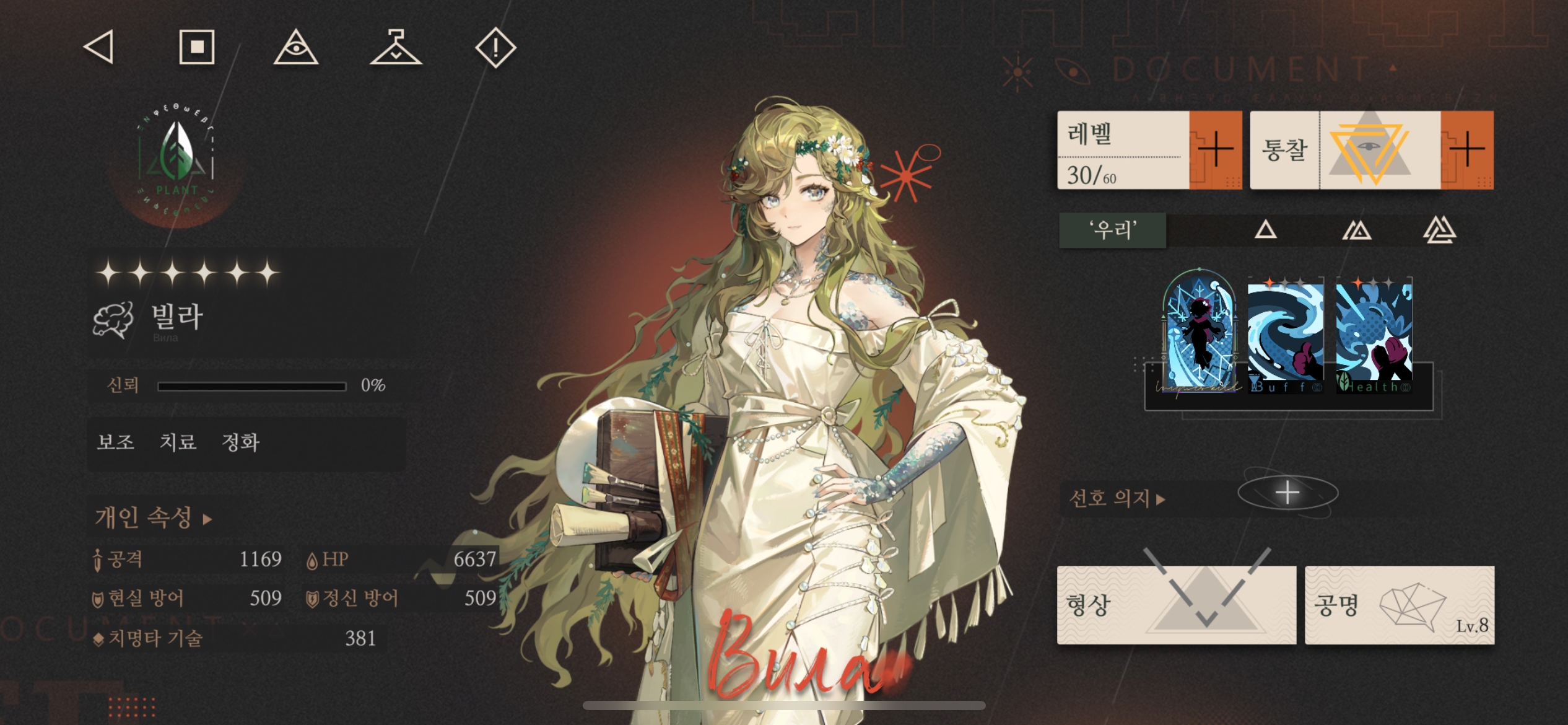 리버스 1999 빌라 통찰 공명 의지 형상 파티 조합 추천 공략 2024년 8월