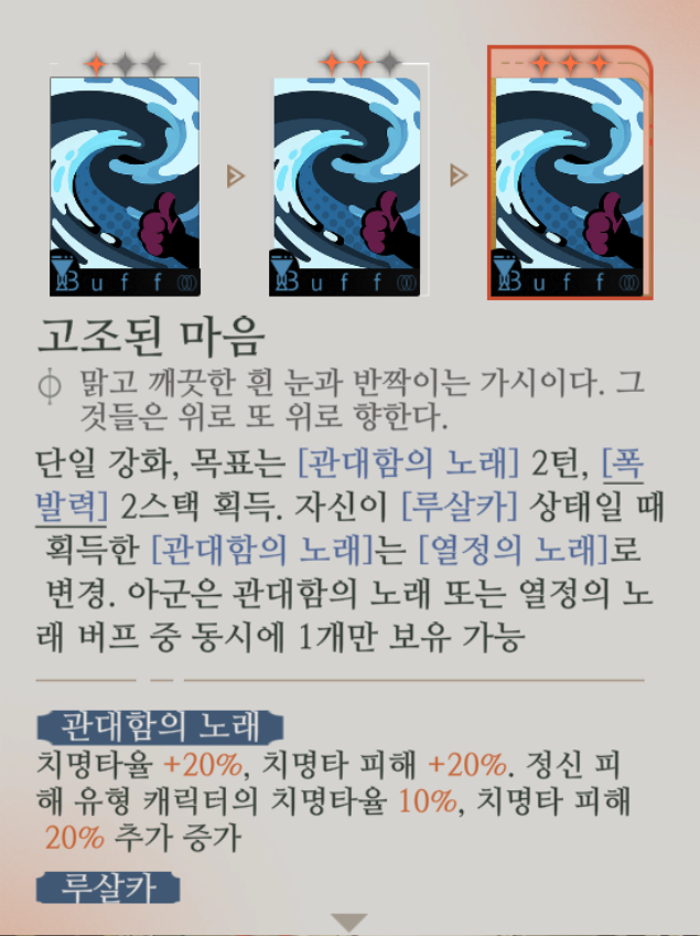 그리고 특히 스킬 1 [고조된 마음]은