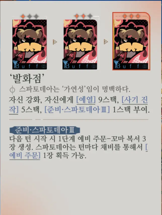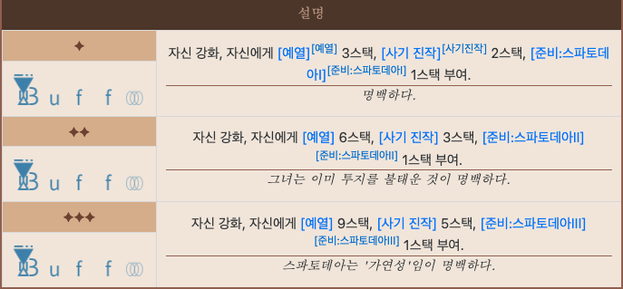 [예열], [사기 진작], [준비 : 스파토데아]를