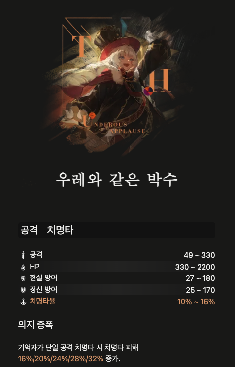 터뜨릴 수 있게 도와주며 치명타 피해도 올려줍니다.
