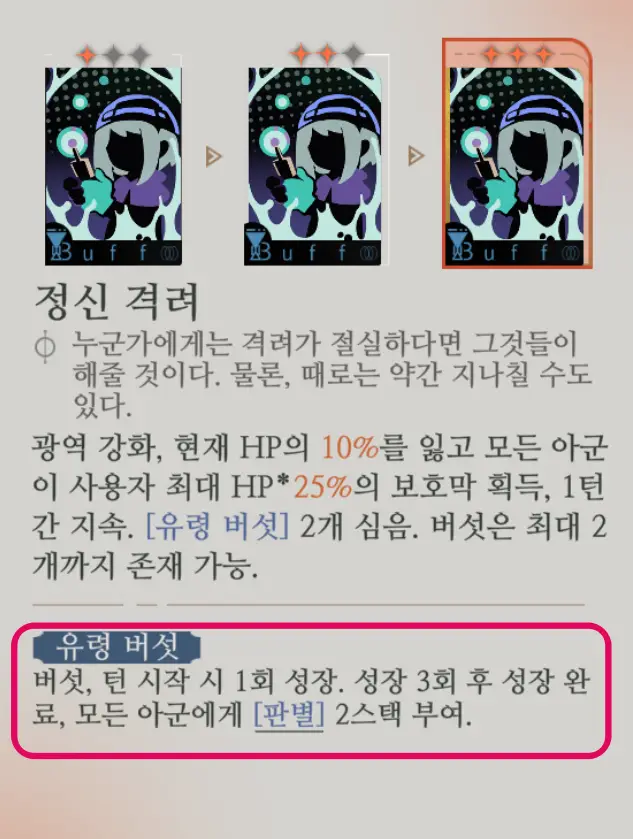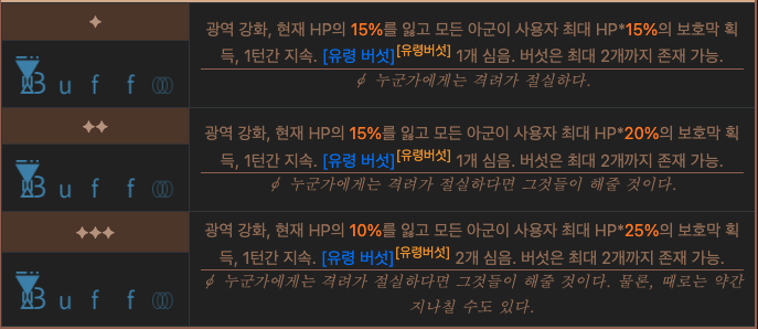 광역 보호막 얻고 치명타 피해 버프 얻음.