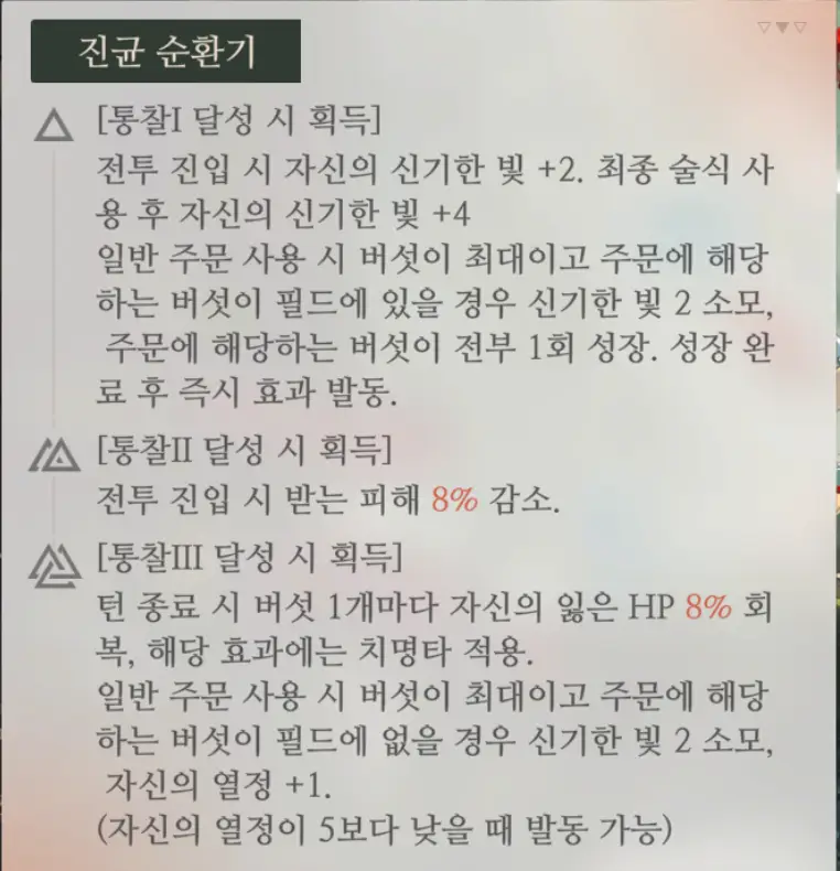 일단 통찰 1은 전투 시 신기한 빛을 얻어요.