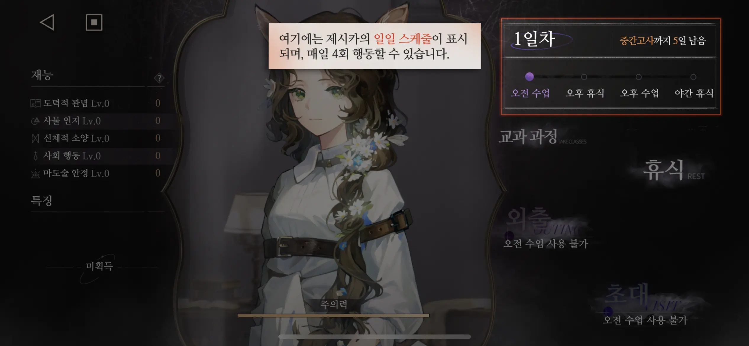 초반에 수업이랑 초대로 스탯을 최대한 당긴 다음 탐방하는 것도 좋음