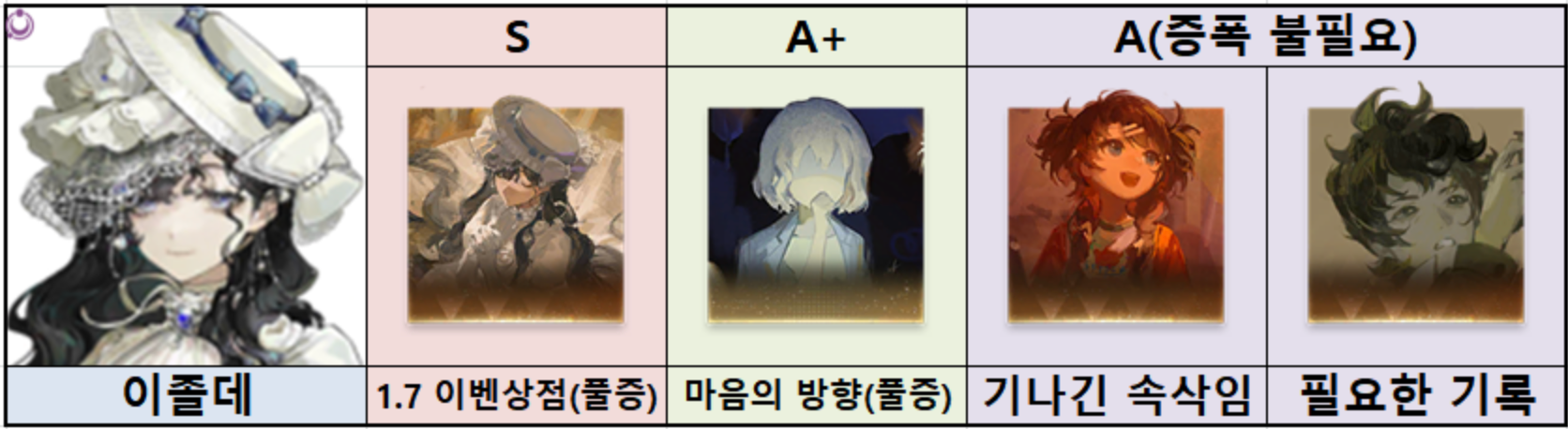 전반 픽업 캐릭터 이졸데의