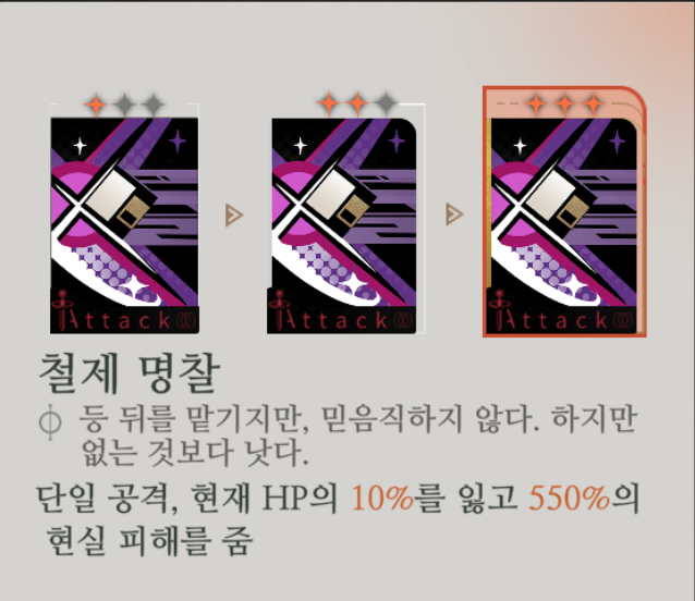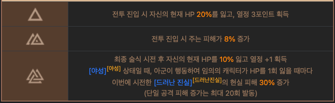 HP를 10% 잃고 열정을 1 획득.