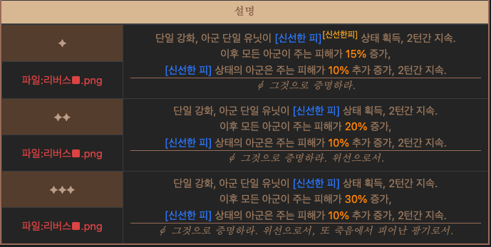 일단 [신선한 피]는 치명타율 15% 상승.