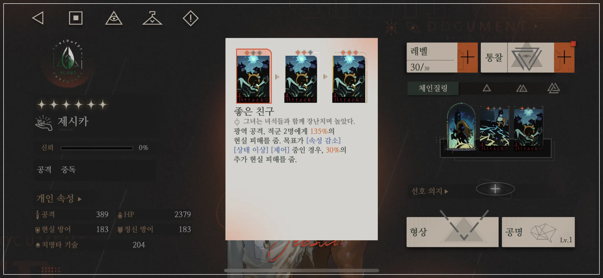 리버스 1999 제시카 통찰 공명 의지 형상 파티 조합 추천 공략 2024년 1월
