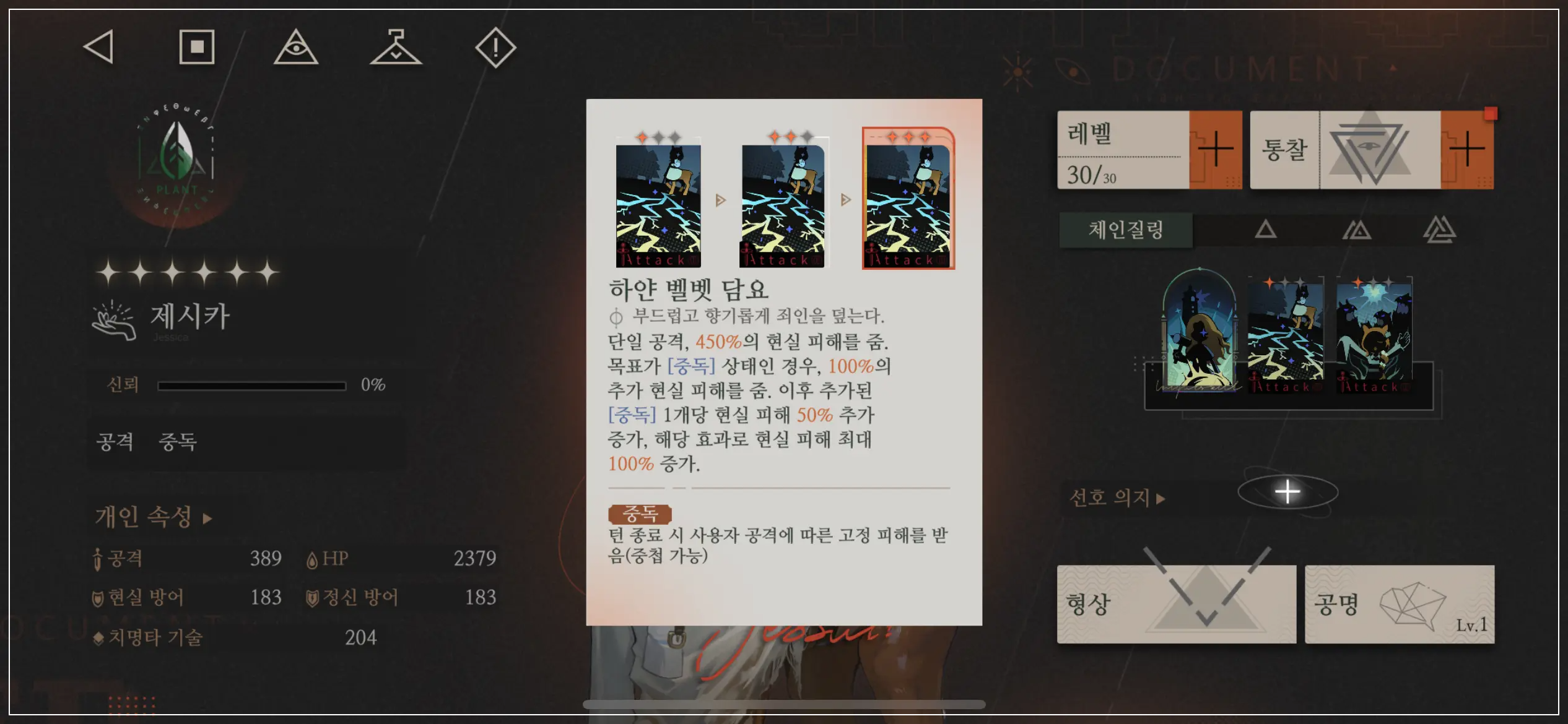 3. 다음 3 턴째에 1 통찰 패시브 - [중독] 2 스택