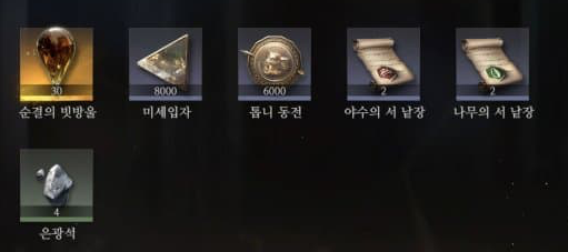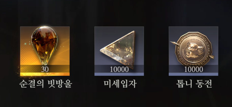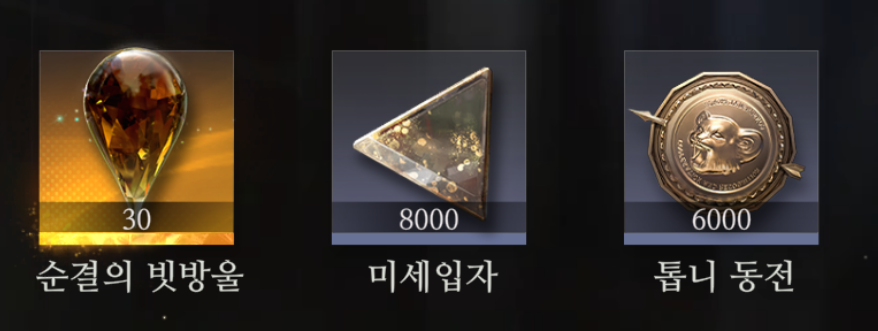 순결의 물방울 60개 미세입자 4000개 초급 비밀 궤짝 2개 |