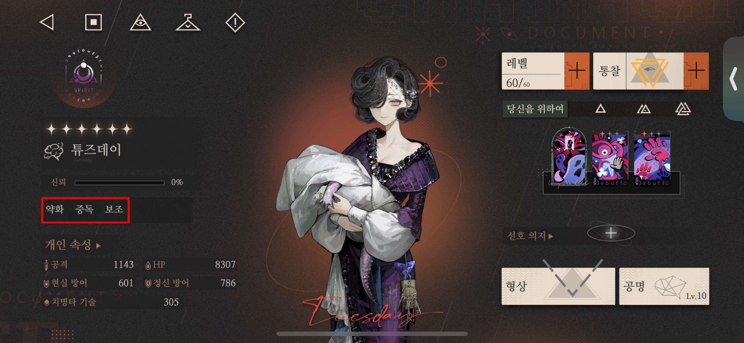 이졸데는 [중독]이 아니라 [연소]인데요?