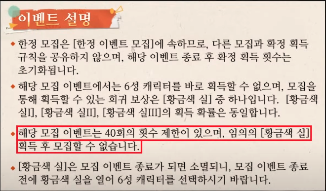 황금색 실을 얻는 순간 뽑기 배너는 끝납니다.