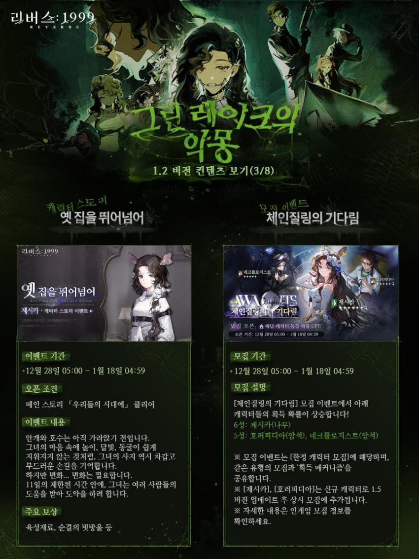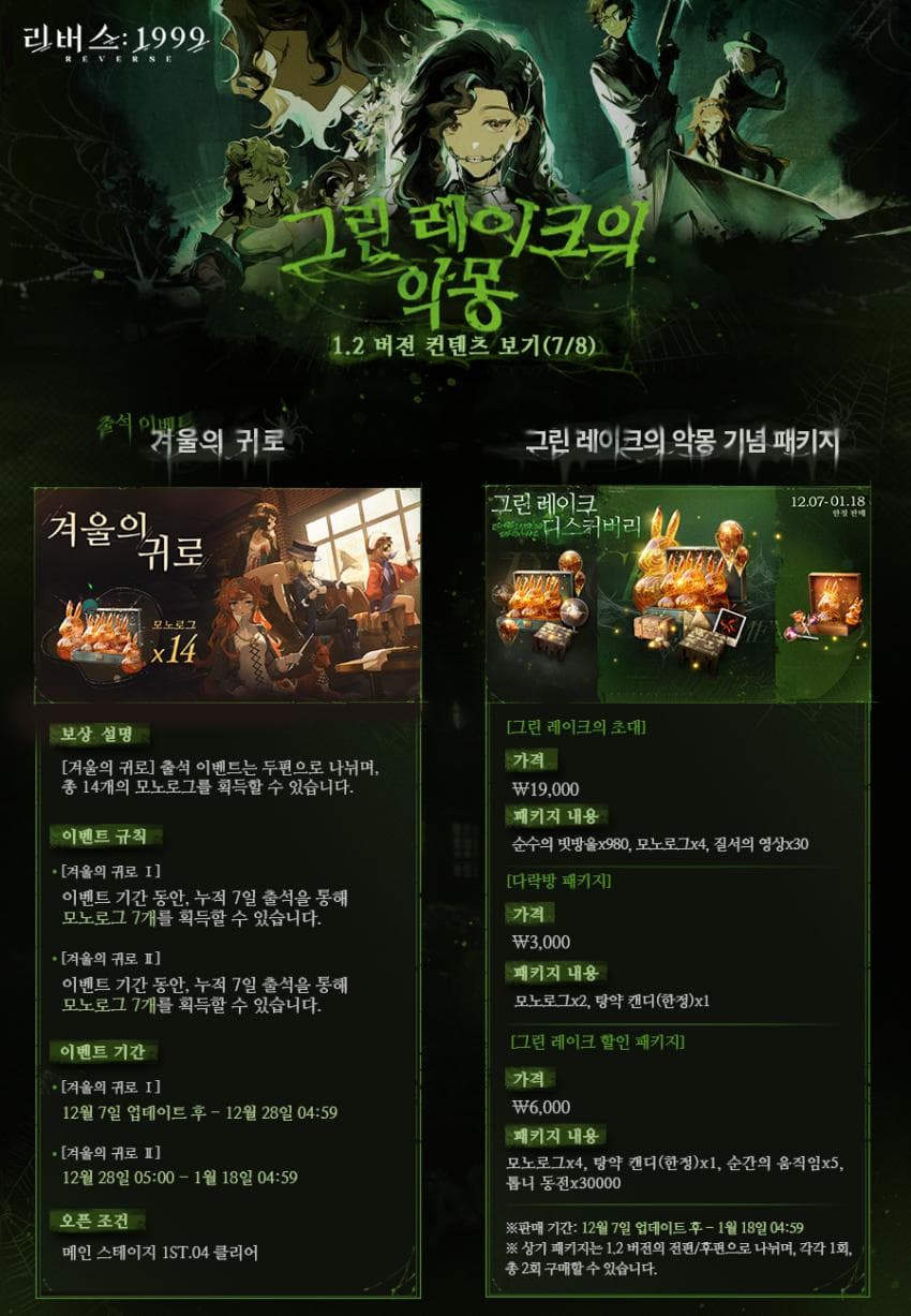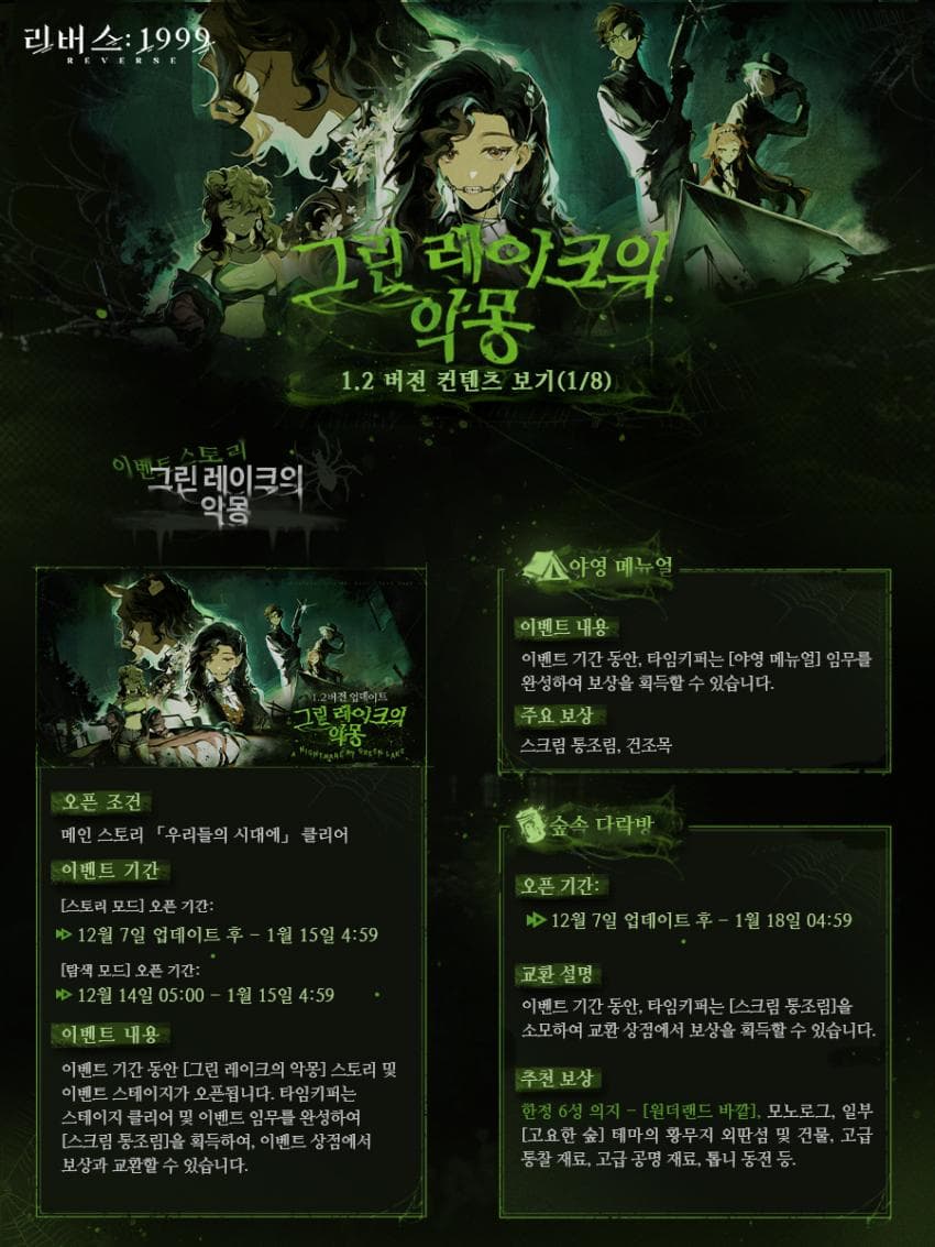 리버스 1999 1.2 버전 그린 레이크의 악몽 프리뷰 가이드 공략 2023년 12월
