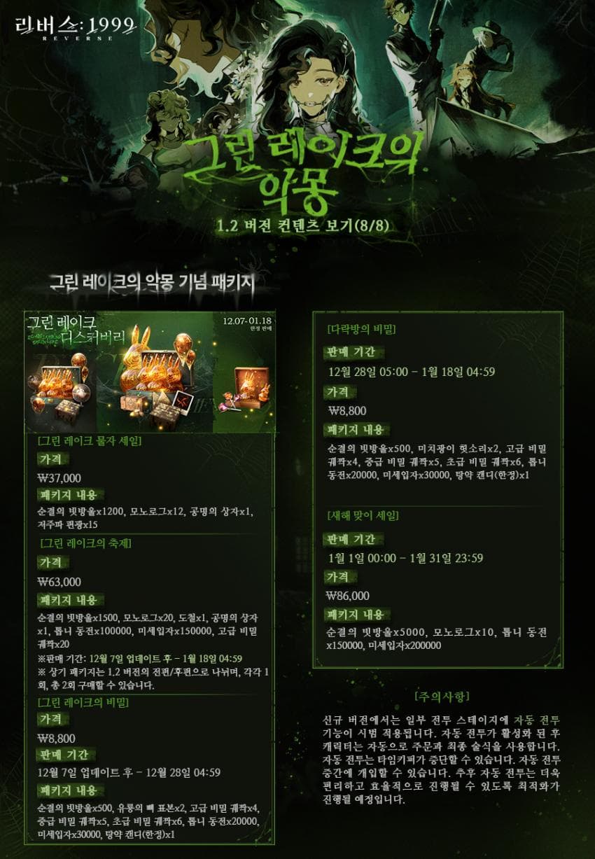 1.2 버전 패치 그린 레이크의 악몽에 대해