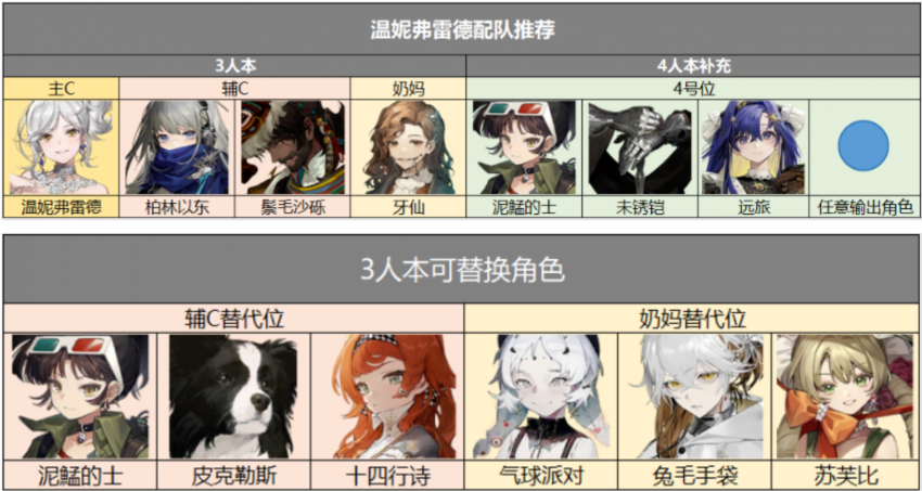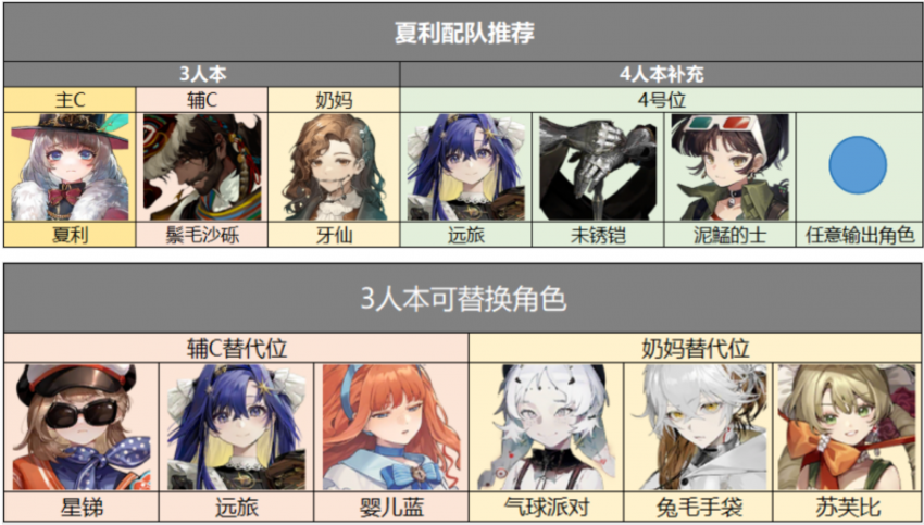 맨 윗줄 오른쪽 캐릭터는 4인 파티에서 기용할 캐릭터.