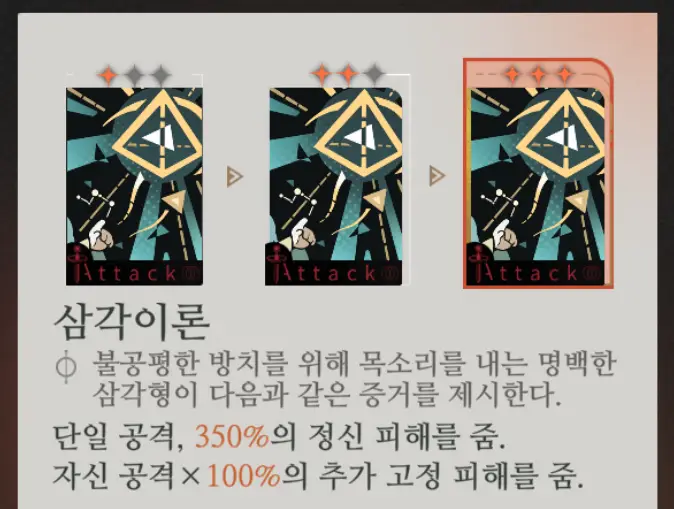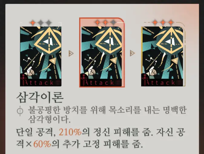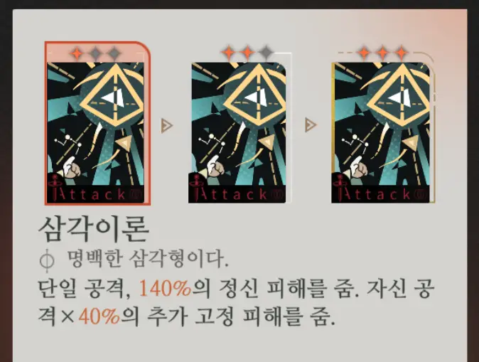 먼저 스킬 1 [삼각이론]입니다.