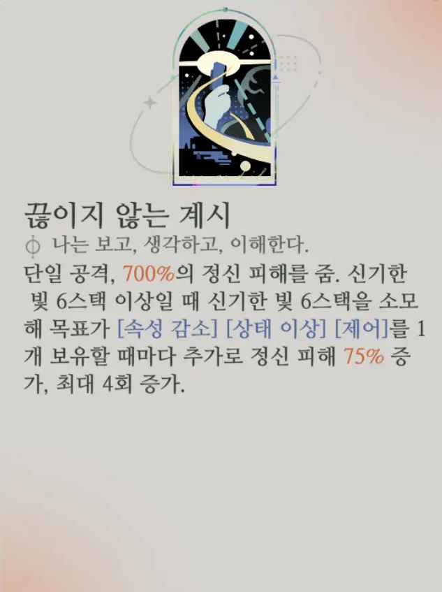 단일 공격이며 700%의 정신 피해를 줍니다.