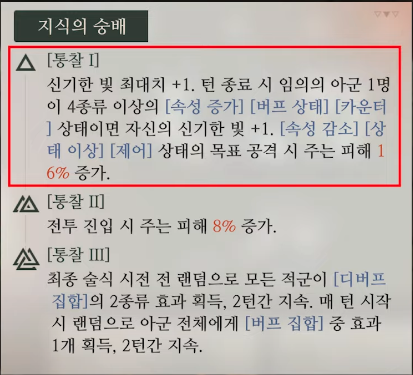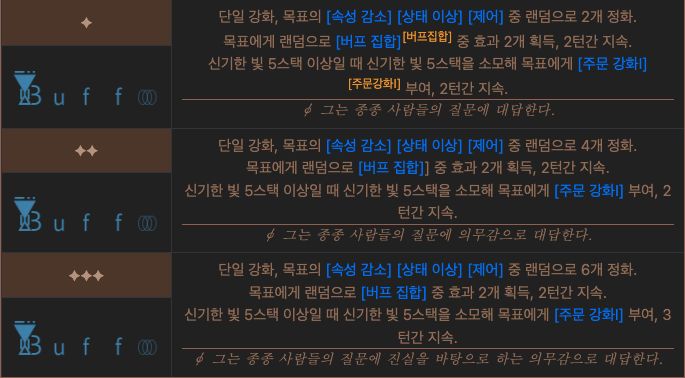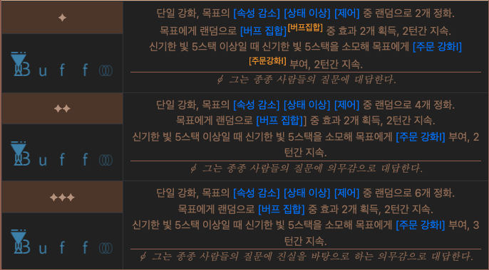 버프 상태가 4종류 이상이라면 신기한 빛 1 스택을