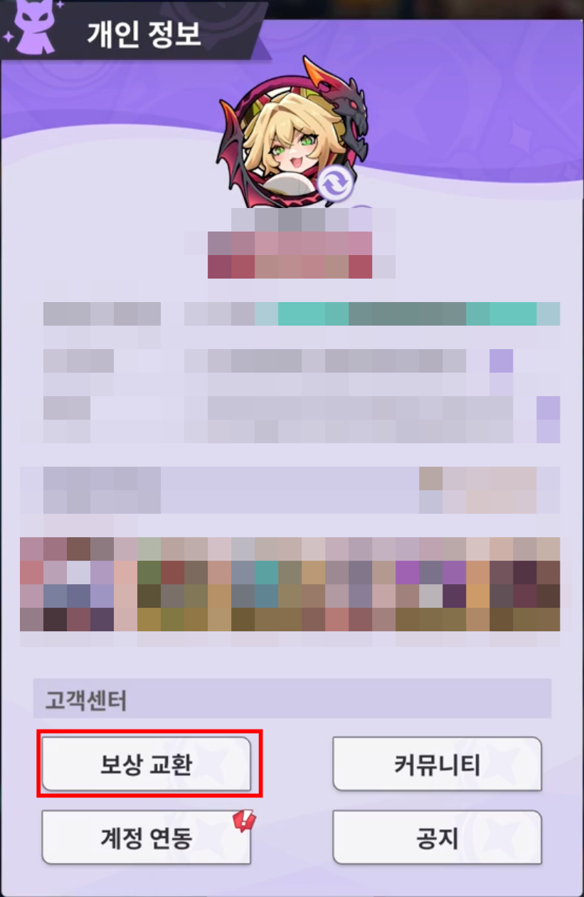 아래에 [보상 교환]을 클릭합니다.