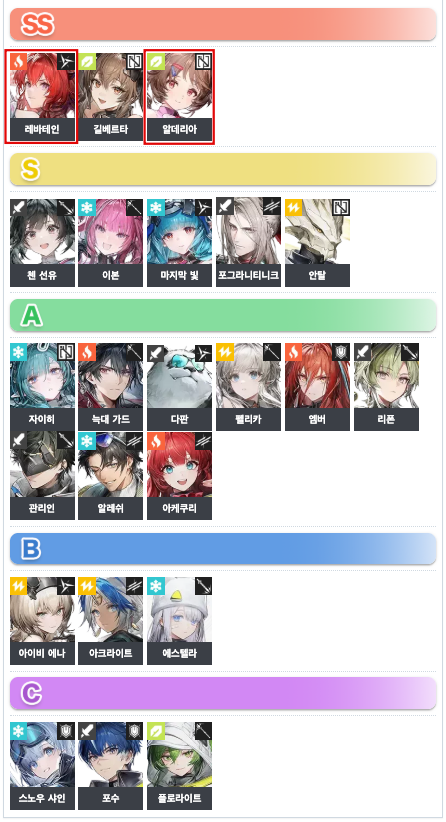 명일방주 엔드필드 캐릭터 티어표 및 설명