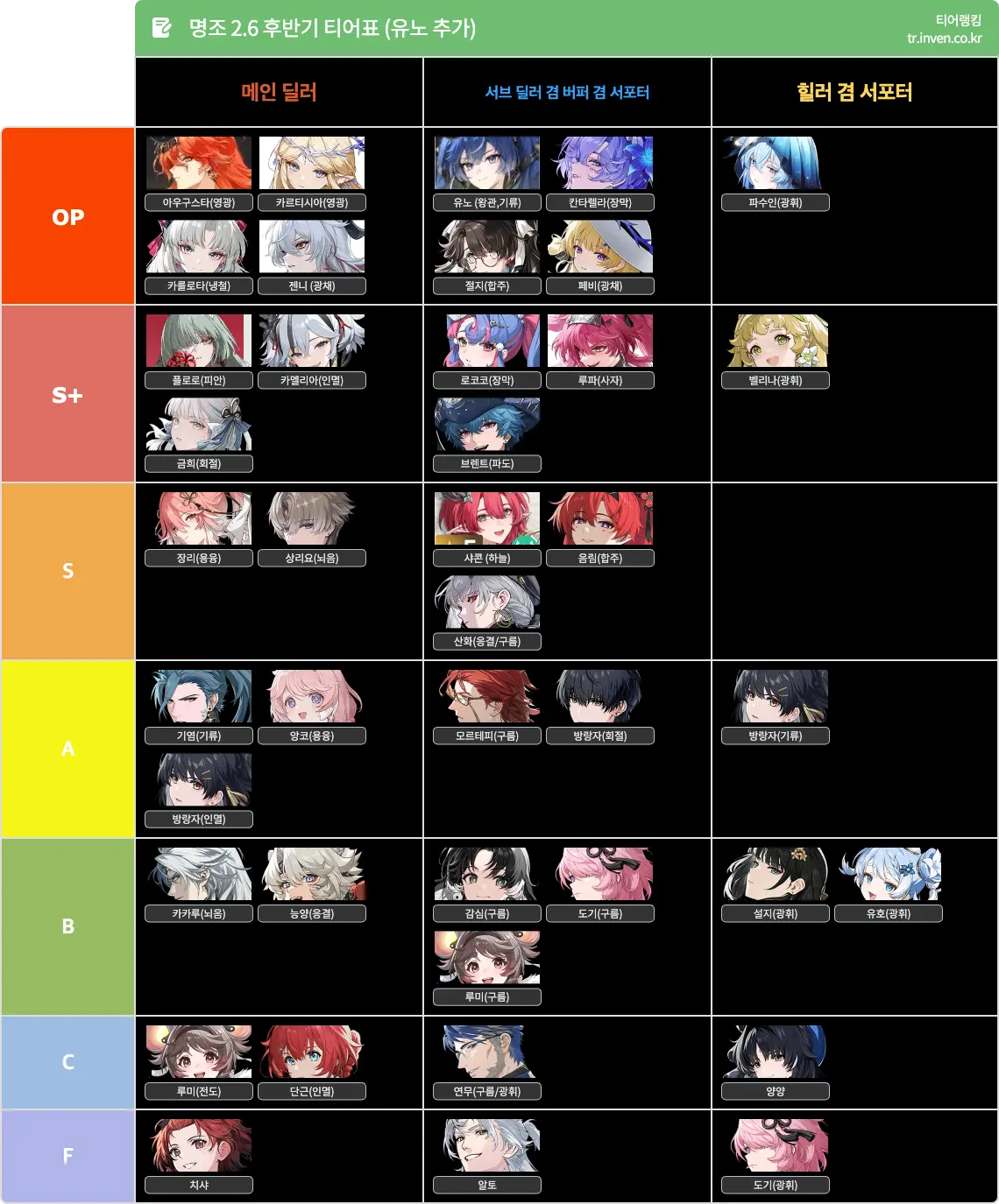 캐릭터 티어 등급표 및 상시 캐릭터 추천 공략을